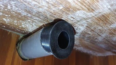 | 為了處理水管與木板過近造成阿匹克扭曲的問題,使用上膠加上鐵氟龍帶的方法,增加了後續維修的難度。 |